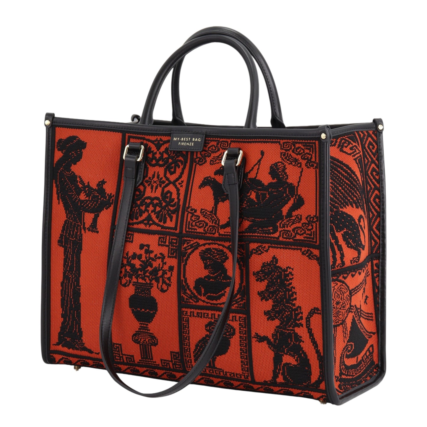 Questa tote bag interpreta l’eleganza contemporanea attraverso una struttura definita e armoniosa, pensata per esprimere personalità e presenza. La silhouette ampia e ben costruita incontra un motivo floreale di forte impatto visivo, trasformando l’accessorio in un vero elemento distintivo di stile.